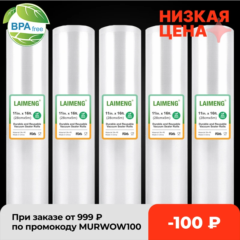 LAIMENG 5 Rolls Sous Vide Roll Bags For Vacuum Packing Machine Packaging Food Storage Vacuum Bags for Vacuum Sealer R129 original Price($) 19.99 salePrice($) 13.59