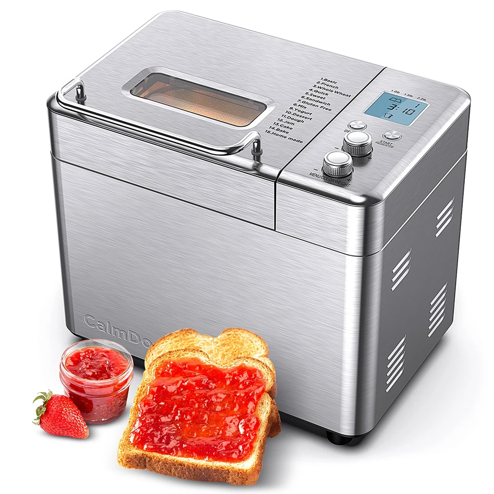 - CalmDo Bread Maker 15-in-1 Stainless Steel Automatic Bread Machine with 3 Loaf Sizes Fruit Nut Dispenser